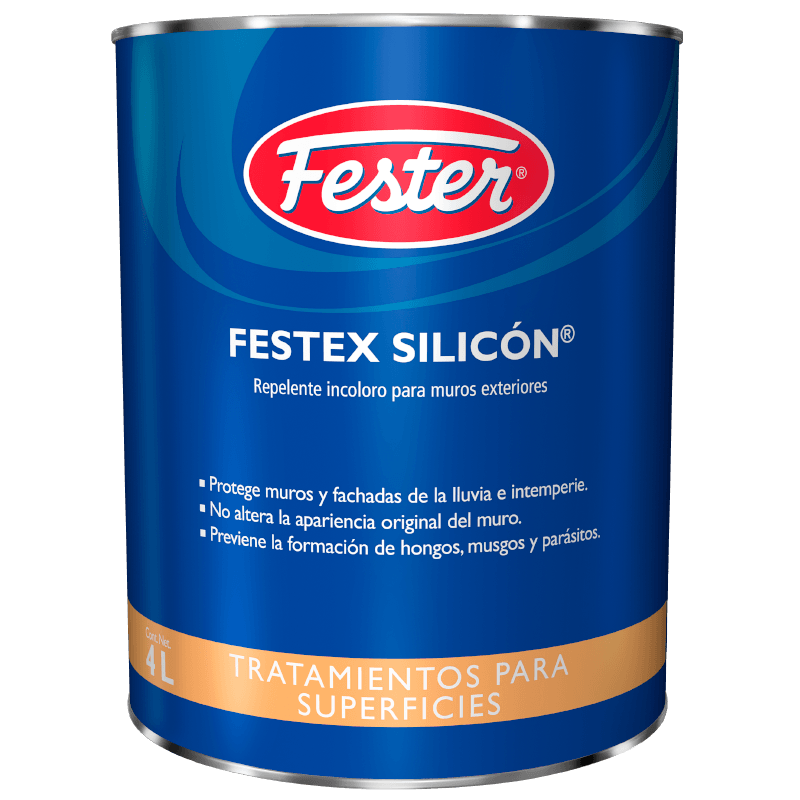Bote Silicón Festex es solución hidrofugante de rápida aplicación, elaborada con resina de silicona rebajada en un solvente volátil de alto poder penetrante.